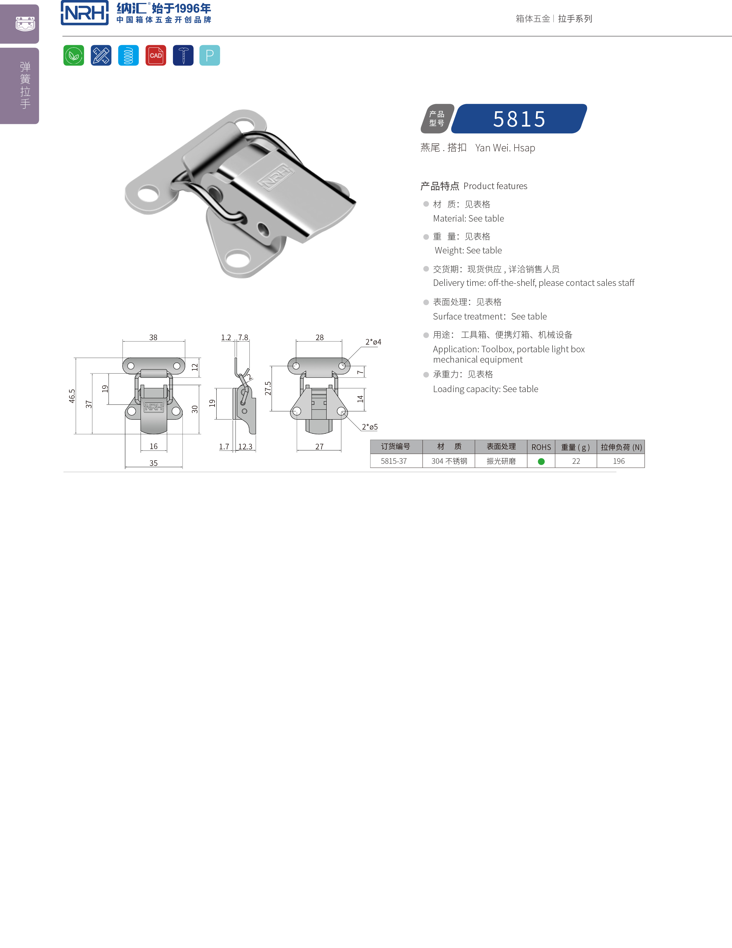 特殊糖心APP官网5815-37不鏽鋼門鎖鎖扣_餐盒鎖扣_NRH糖心视频在线观看糖心APP官网